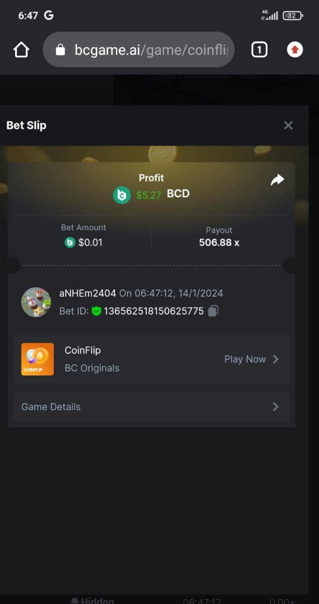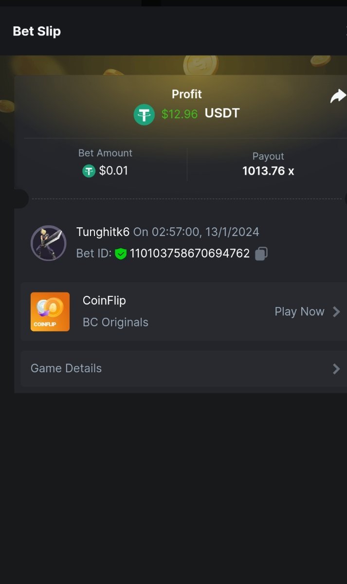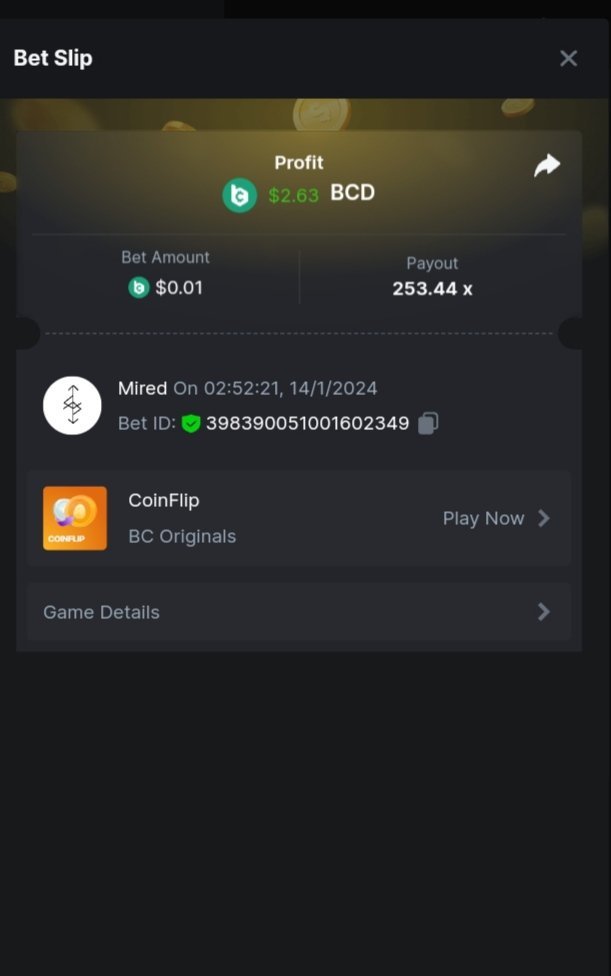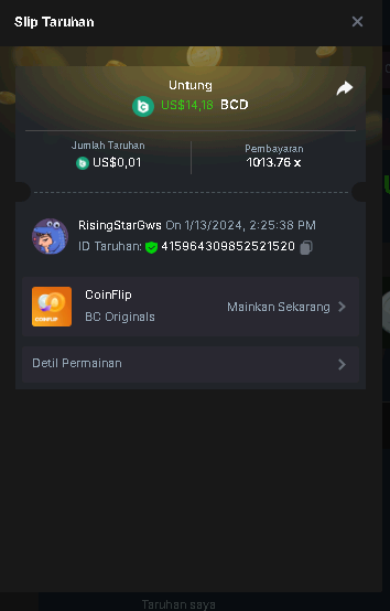 Moderator Giandreas Posted January 13, 2024 Moderator Share Posted January 13, 2024 Read Carefully Before Start To Hunt Forum Daily Challenges #478Hunt : Coin flip Win the highest pay out Min Payout : series 5 Min Level 10 ️Duration Starting : Now End time : 23.59 UTC Time How to Join? Make screenshot + paste your bet link + UID or Profile link Any coin, with min bet 0.01 USD is allowed (jb/bb/bcl not allowed) Reward Prizes 1st Place.....$7 BCD 2nd Place.....$5 BCD 3rd Place.....$4 BCD 4th Place.....$3 BCD 5th Place.....$2 BCD 🏵 Winners will be announcing next day after Roll Point! Link to comment Share on other sites More sharing options...