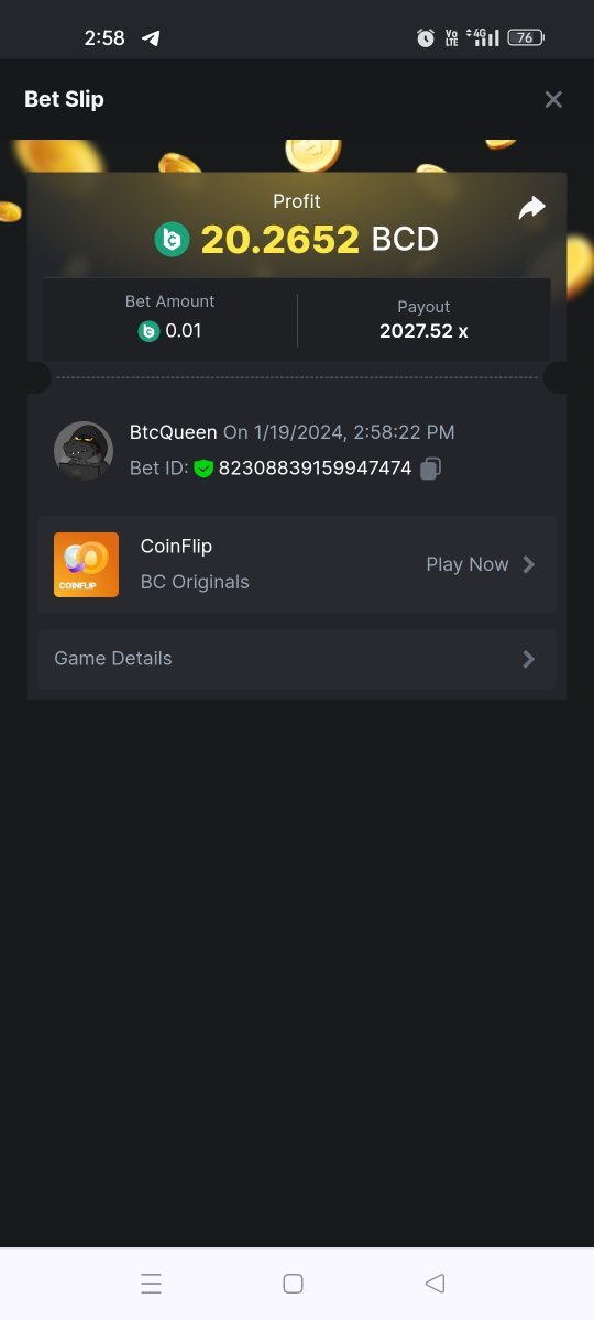 Moderator Giandreas Posted January 19, 2024 Moderator Share Posted January 19, 2024 Read Carefully Before Start To Hunt Forum Daily Challenges #484Hunt : CoinFlip Win the highest pay out Min Payout : series 6 Min Level 10️Duration Starting : Now End time : 23.59 UTC Time How to Join? Make screenshot + paste your bet link + UID or Profile link Any coin, with min bet 0.01 USD is allowed (jb/bb/bcl not allowed)Reward Prizes 1st Place.....$7 BCD 2nd Place.....$5 BCD 3rd Place.....$4 BCD 4th Place.....$3 BCD 5th Place.....$2 BCD 🏵 Winners will be announcing next day after Roll Point! Link to comment Share on other sites More sharing options...