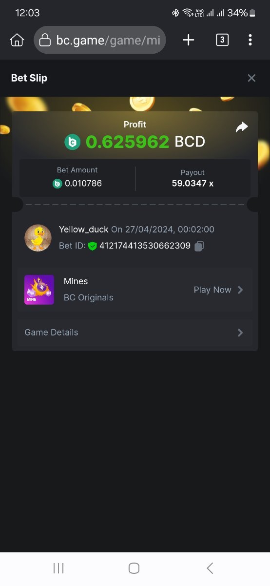 Moderator Giandreas Posted April 26, 2024 Moderator Share Posted April 26, 2024 Read Carefully Before Start To Hunt Forum Daily Challenges #582Hunt : Mines Win the highest pay out Min Payout : x50 Min Level 10️Duration Starting : Now End time : 23.59 UTC Time How to Join? Make screenshot + paste your bet link + UID or Profile link Any coin, with min bet 0.01 USD is allowed (jb/bb/bcl not allowed)Reward Prizes 1st Place.....$7 BCD 2nd Place.....$5 BCD 3rd Place.....$4 BCD 4th Place.....$3 BCD 5th Place.....$2 BCD 🏵 Winners will be announcing next day after Roll Point! 3 Link to comment Share on other sites More sharing options...