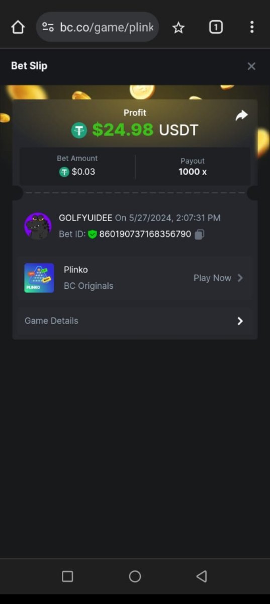 2nd place . . . .GOLFYUIDEE   1000 x 24.98 . . . .5$ BCD