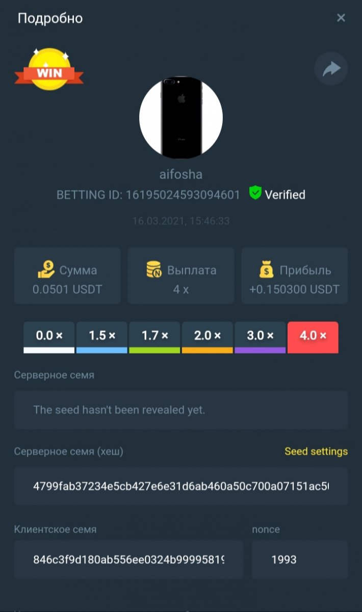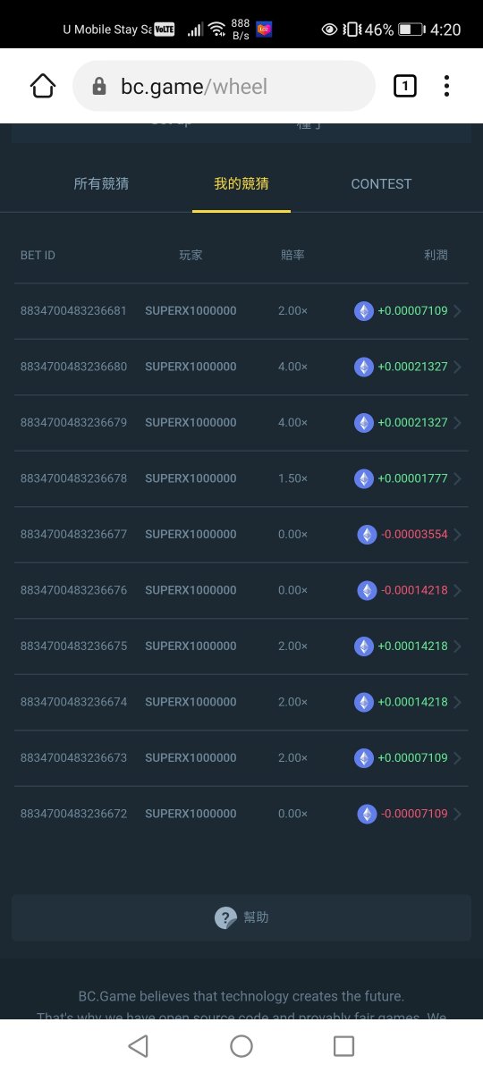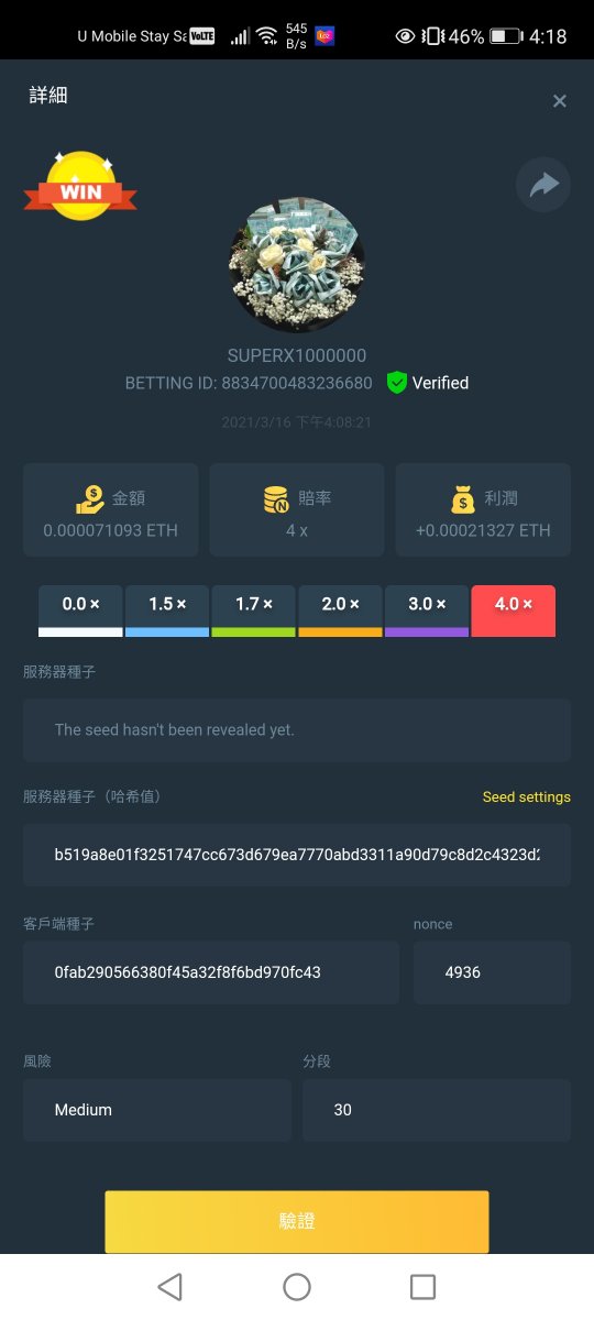 • 想要參與活動,只要挑戰成功、留下截圖並貼到此討論串即可,截圖需內含 betting id 以利驗證。你提供的多筆下注資料中 nonce 必需是連續的。