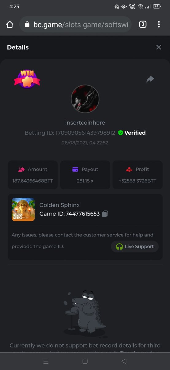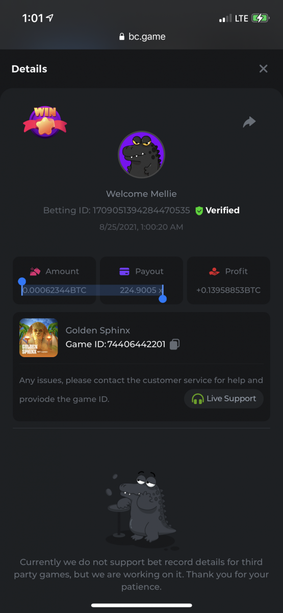J9kerz23we Posted August 23, 2021 Share Posted August 23, 2021 19067919627453932 Egyptian adventures 946.30x@ 3.355 XRP 1709051394284470535 Golden Sphinx 224.9X@ .00062344 btc my handle is welcome Mellie. In game Link to comment Share on other sites More sharing options...