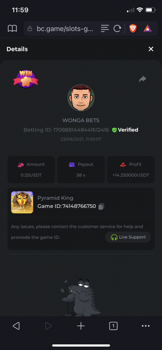W0NGA Posted August 23, 2021 Share Posted August 23, 2021 Just securing my spot before I get some big wins! Wonga Bets Azrabah Wishes Betting ID: 1708881718384677383 Pyramid King Betting ID: 1708881448441612416 58x Egyptian Betting ID: 32051734612280265 848.9x Golden Sphinx 208.70x Betting ID: 1708992221789262976 Link to comment Share on other sites More sharing options...