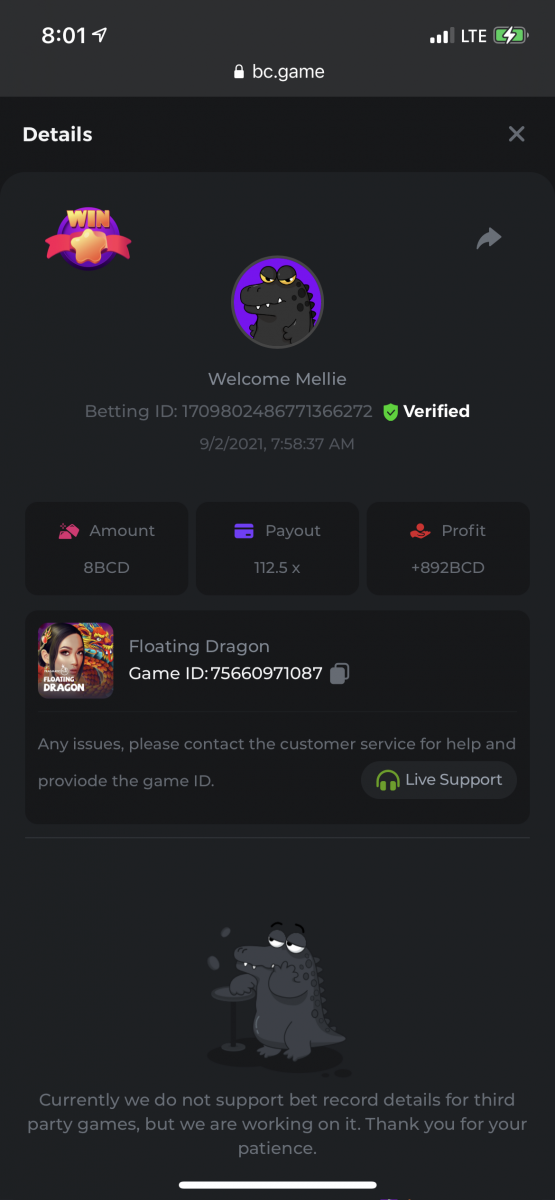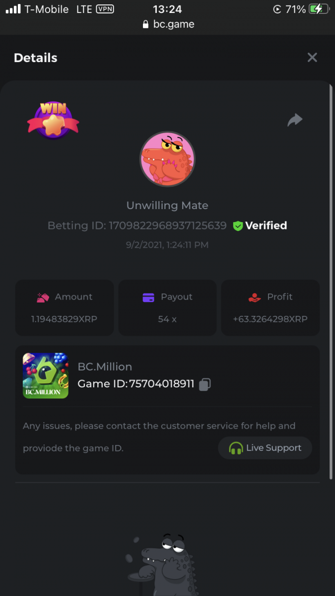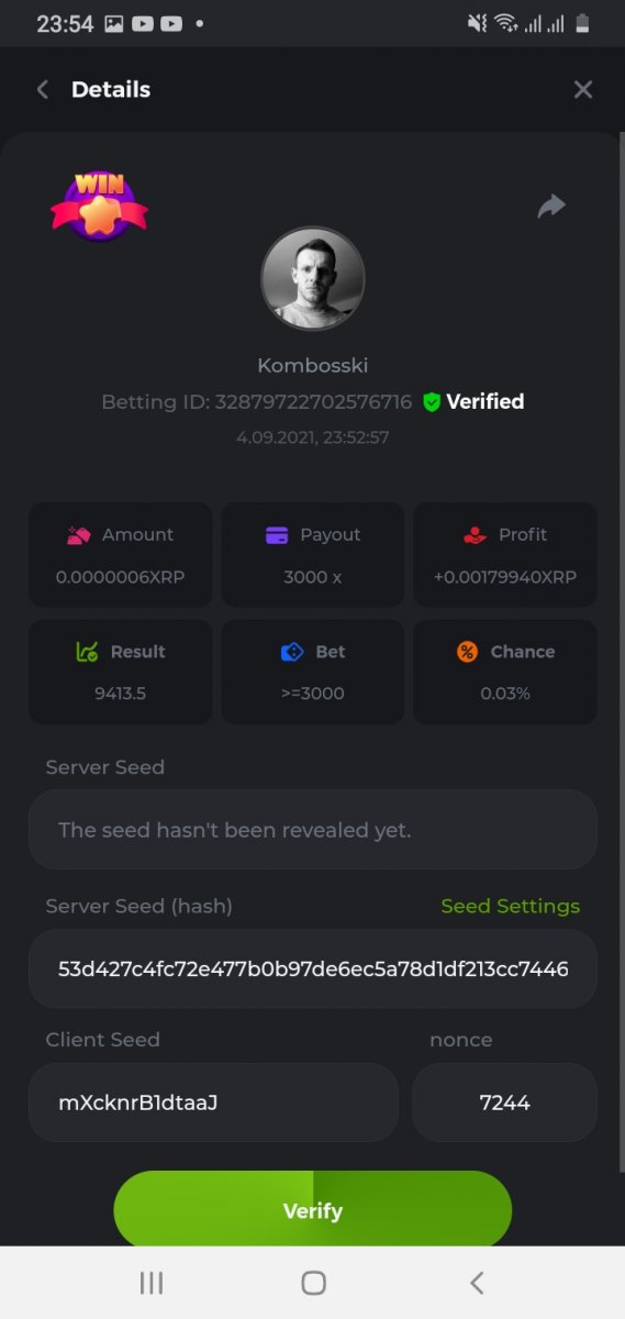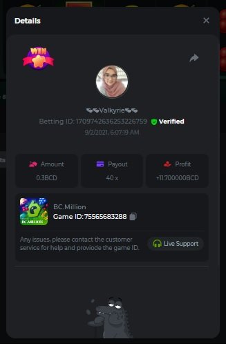 Finde die Details Ansicht nicht mehr. Habe so ein Screenshot, Sie können den Gewinn ja nachsehen unter der Bet id 🙂