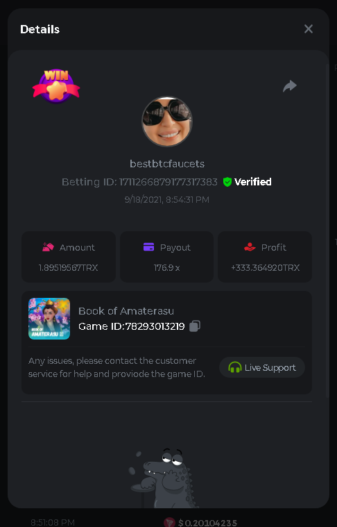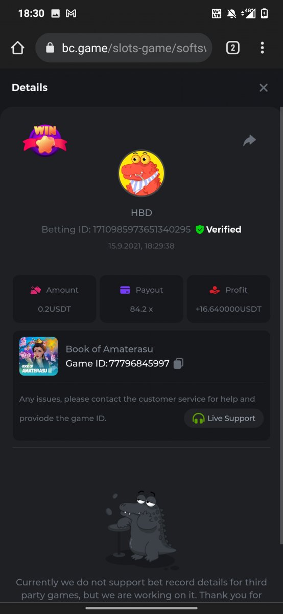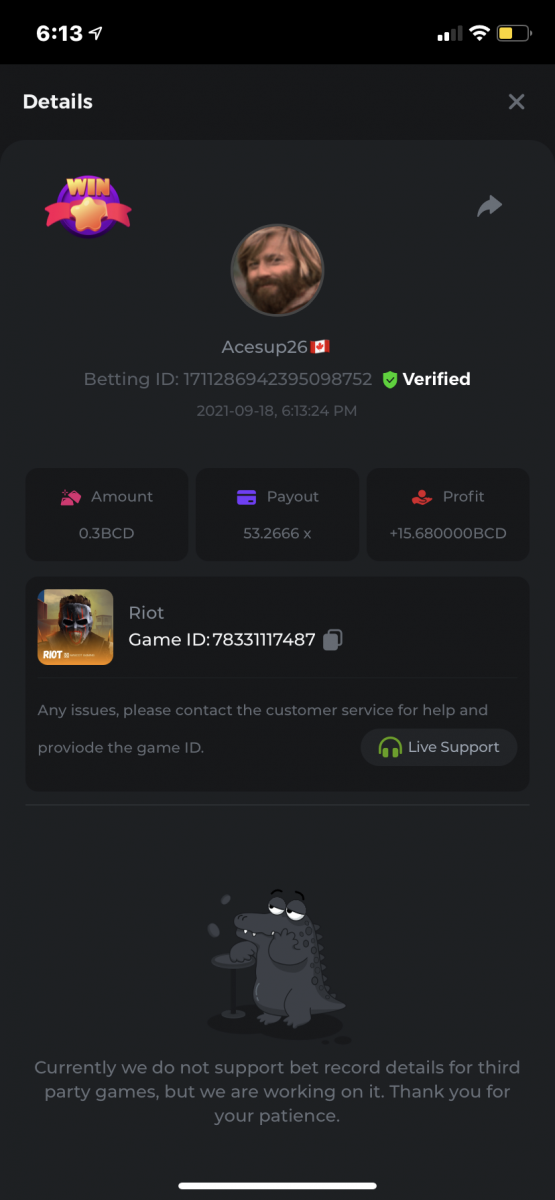 UnwillingNate Posted September 18, 2021 Share Posted September 18, 2021 On 9/14/2021 at 1:00 PM, Sleepiez said: Sleepiez Betting ID: 1710908475928993920 Gryphon's Castle (85.4x) Betting ID: 1710910332121292551 Book of Amaterasu (188x) Betting ID: 1710915648507424640 Riot (80x) Betting ID: 1711139402614348928 Wild Spirit (60.3x) Boy oh Boy alot of winning did not meet bet requirement lol Link to comment Share on other sites More sharing options...