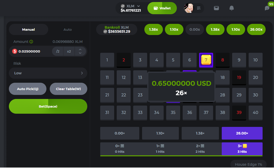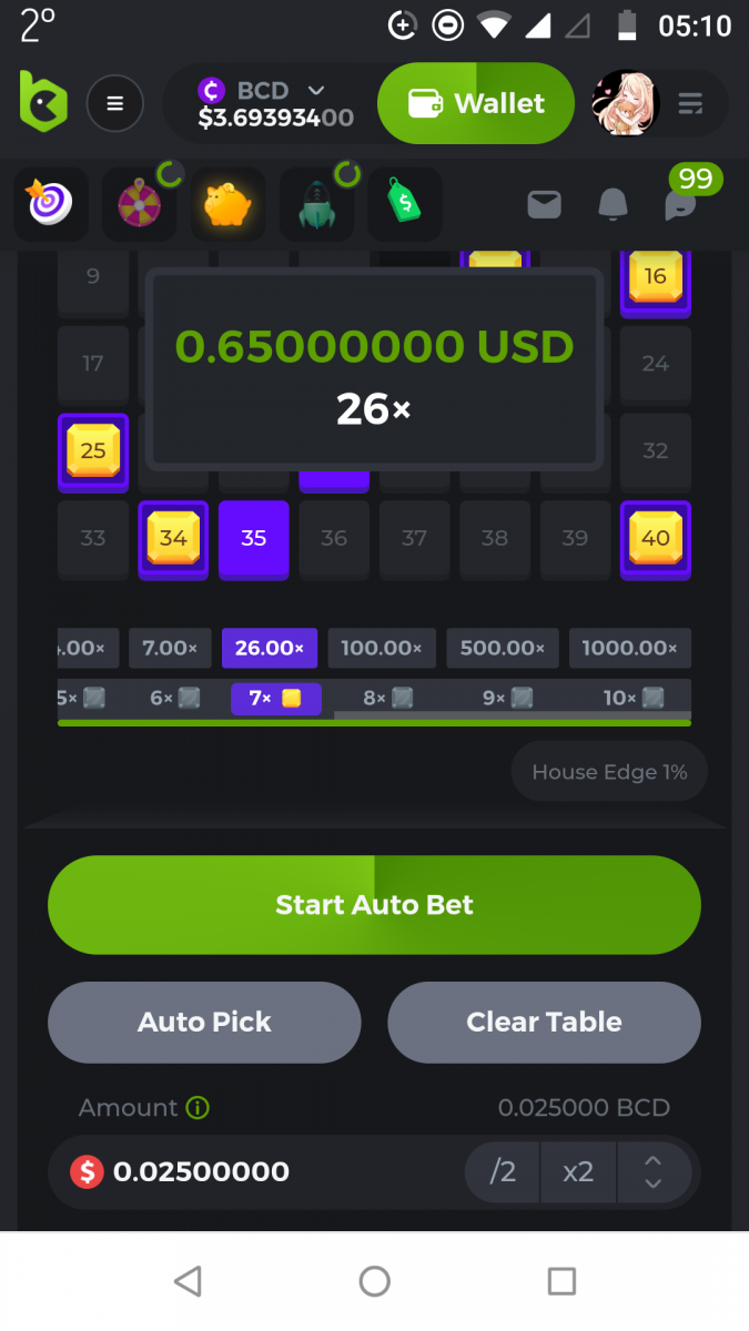 $0.025 USD equivalent (please check the individual coin amounts below) - Bets made below this amount will not count