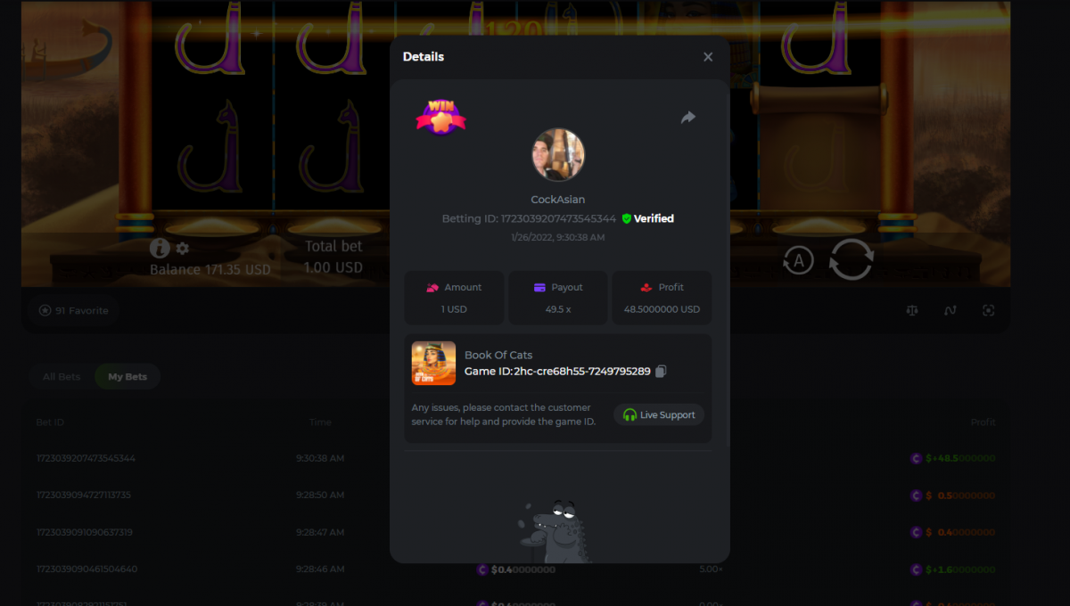 Bubbles00 Posted January 26, 2022 Share Posted January 26, 2022 (edited) 1 hour ago, k1llahv1nt said: f5fc5fa85aeef6c845bf221527683b3a50b44a33062606d16d7f815cd88e03c4 ID ставки: 47777340755331928 ID ставки: 47777340755333090 ID ставки: 47777340755333678 Lol, there's no nonce in slots No seed too Edited January 26, 2022 by Bubbles00 Link to comment Share on other sites More sharing options...