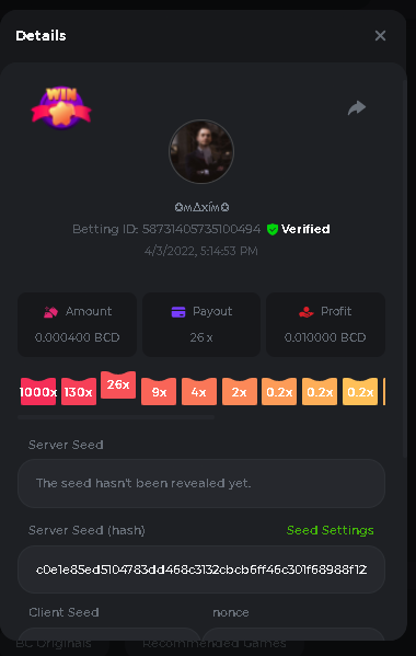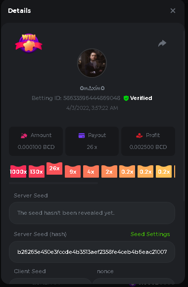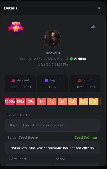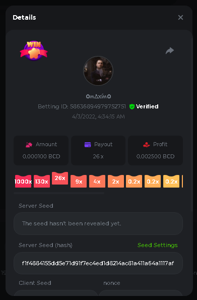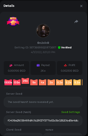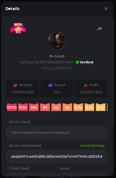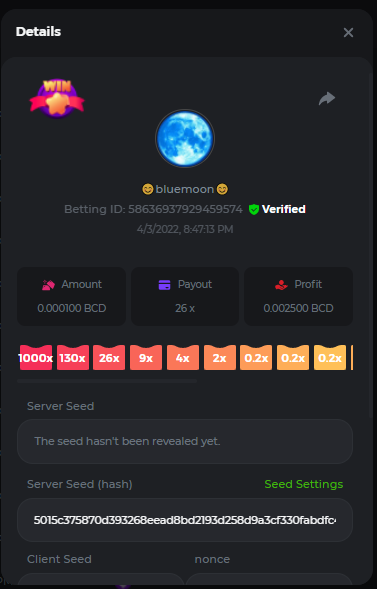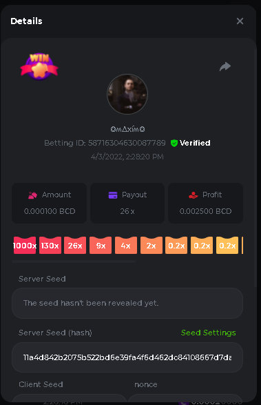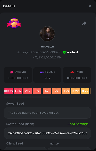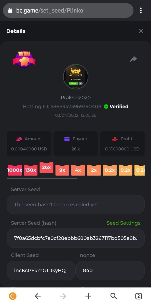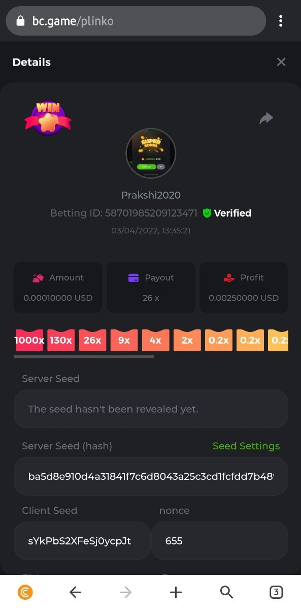 Event Team BCGame_Maxim Posted April 2, 2022 Event Team Share Posted April 2, 2022 BC Profile : https://bc.game/user/profile/2008867 [My Name not updating on forum ] Limbo 2000x = 2 Point Plinko 26x = 121 x 1 = 121 Points Plinko 130x = 18 x 7 = 126 Points Plinko 1000x = 3 x 10 = 30 Points Total = 279 Points https://bc.game/sd/?sd=10HMV099U89R83 https://bc.game/sd/?sd=10HMVUJVQL60PF https://bc.game/sd/?sd=10HMWDJIN8DN9V https://bc.game/sd/?sd=10HMWLM0ENQOLV https://bc.game/sd/?sd=10HMWT2C63O3DF https://bc.game/sd/?sd=10HMX16KP3YYOJ https://bc.game/sd/?sd=10HMX9ZY2GITQR https://bc.game/sd/?sd=10HMXJ4QRR6OSZ https://bc.game/sd/?sd=10HMXVP1UA7XG3 https://bc.game/sd/?sd=10HMY5S8JBCPAR 130x Plinko https://bc.game/sd/?sd=10HMYCLEZN2P03 https://bc.game/sd/?sd=10HMZ48EXJR28J https://bc.game/sd/?sd=10HMZDJEIRCM4Z https://bc.game/sd/?sd=10HMZM7EAJMZ9V https://bc.game/sd/?sd=10HMZT3AQ4ZNKJ Plinko- 130x https://bc.game/sd/?sd=10HMZYAENOWS9F https://bc.game/sd/?sd=10HN02HHARQN83 https://bc.game/sd/?sd=10HN0BJN21AQS3 https://bc.game/sd/?sd=10HN0IBWWC9VDF https://bc.game/sd/?sd=10HN0Z0OHFFAQB https://bc.game/sd/?sd=10HN1C9UFBWJKJ https://bc.game/sd/?sd=10HN1FU9X2SH03 https://bc.game/sd/?sd=10HN1LH3YEB8R7 https://bc.game/sd/?sd=10HN1TPUHD6YOJ https://bc.game/sd/?sd=10HN1Y55WK6TCJ https://bc.game/sd/?sd=10HN292WYUHWYB Plinko-130x https://bc.game/sd/?sd=10HN2ENVY81WK3 https://bc.game/sd/?sd=10HN2SV3QUPIC3 https://bc.game/sd/?sd=10HN2WTCI8K2KZ https://bc.game/sd/?sd=10HN30904JDES3 https://bc.game/sd/?sd=10HN3AZYMI0E8J https://bc.game/sd/?sd=10HN4K9RMD4BV7 https://bc.game/sd/?sd=10HN57R2MUSMC3 https://bc.game/sd/?sd=10HN5WIE1XR503 https://bc.game/sd/?sd=10HN6KCSR8N95F https://bc.game/sd/?sd=10HN6S682AXLOZ Plinko-130x https://bc.game/sd/?sd=10HN7HZ3QIRP5F https://bc.game/sd/?sd=10HN7L7LU1BV2R https://bc.game/sd/?sd=10HN89KTDX3HUB https://bc.game/sd/?sd=10HN994FWQV3TF Plinko-130x https://bc.game/sd/?sd=10HNA40IUSMDQR https://bc.game/sd/?sd=10HNAA4JGDF5LF https://bc.game/sd/?sd=10HNAD0BG2U9SJ https://bc.game/sd/?sd=10HNAG3EZC55HV https://bc.game/sd/?sd=10HNAKHSXAN9QR https://bc.game/sd/?sd=10HNARO51J23O3 Plinko-130x https://bc.game/sd/?sd=10HO2VCGZ75KIB https://bc.game/sd/?sd=10HO31ND4L9V6B https://bc.game/sd/?sd=10HO343E8S7O5V Plinko-130x https://bc.game/sd/?sd=10HO3O2SNVO2KZ https://bc.game/sd/?sd=10HO3SWFIILK43 https://bc.game/sd/?sd=10HO43ZMHL81LF https://bc.game/sd/?sd=10HO46YX9L0G0J https://bc.game/sd/?sd=10HO4ARQ0PUQDV https://bc.game/sd/?sd=10HO4F5PPD9NV7 https://bc.game/sd/?sd=10HO4HR1HCBTOZ https://bc.game/sd/?sd=10HO4K89322T5F Plinko-130x https://bc.game/sd/?sd=10HO4OKBHZV4ER https://bc.game/sd/?sd=10HO59IGVB7Y1F https://bc.game/sd/?sd=10HO5DJJWBPGCZ https://bc.game/sd/?sd=10HO5GWWINUNMB https://bc.game/sd/?sd=10HO5U3ZSMKETV https://bc.game/sd/?sd=10HO6110G8KRV7 https://bc.game/sd/?sd=10HO678DKO0POZ https://bc.game/sd/?sd=10HO6FWW88UQKZ https://bc.game/sd/?sd=10HO6LXNMMPZIR https://bc.game/sd/?sd=10HO6NKJ5D3TOZ https://bc.game/sd/?sd=10HO6VT6XHL7O3 https://bc.game/sd/?sd=10HO71JDL4M2OJ Plinko-130x https://bc.game/sd/?sd=10HO75TGBNBH8Z https://bc.game/sd/?sd=10HO79NAP5VJMB https://bc.game/sd/?sd=10HO7R9R882W43 https://bc.game/sd/?sd=10HO7UII8JLC0J Plinko-1000x https://bc.game/sd/?sd=10HO84GYI4KYDV Plinko-1000x https://bc.game/sd/?sd=10HO8AU8AUG74J https://bc.game/sd/?sd=10HO8O8SKBHNV7 Plinko-130x https://bc.game/sd/?sd=10HO94ZEKSY49F https://bc.game/sd/?sd=10HO9Z2X4F455F https://bc.game/sd/?sd=10HOA28RUAP3WZ https://bc.game/sd/?sd=10HOA4Z4450G0J https://bc.game/sd/?sd=10HOA8ARZPO8PF https://bc.game/sd/?sd=10HOAAJSJQML1V https://bc.game/sd/?sd=10HOAE95XPHFKJ https://bc.game/sd/?sd=10HOAKACLTL3PV Plinko-130x https://bc.game/sd/?sd=10HOAQJDNJBKER Plinko-130x https://bc.game/sd/?sd=10HOAYXR7YQYHF https://bc.game/sd/?sd=10HOB7V4IYWQVN https://bc.game/sd/?sd=10HOBL2RW2WB2R https://bc.game/sd/?sd=10HOBUT5Z45LAR https://bc.game/sd/?sd=10HOBW3HLRDGCZ https://bc.game/sd/?sd=10HOF4QGQJM4GJ https://bc.game/sd/?sd=10HOGCG97AT0K3 Plinko-130x https://bc.game/sd/?sd=10HOGG6JHP01SJ https://bc.game/sd/?sd=10HOH1JN7WJTW3 https://bc.game/sd/?sd=10HOH7ILXBFCB7 https://bc.game/sd/?sd=10HOHHEBQASCUR https://bc.game/sd/?sd=10HOIB0E80URKJ https://bc.game/sd/?sd=10HOIFGBZV7B4J Plinko-130x https://bc.game/sd/?sd=10HOIMGJTU8PW3 https://bc.game/sd/?sd=10HONW6VSJC3DF https://bc.game/sd/?sd=10HOO5VQ3F9FKJ https://bc.game/sd/?sd=10HOOLCJI97THV https://bc.game/sd/?sd=10HOOOK1A7SHLF Plinko-130x https://bc.game/sd/?sd=10HOOU172Q9EDV https://bc.game/sd/?sd=10HOOX6EV55YC3 https://bc.game/sd/?sd=10HOP3ZXXTSX03 https://bc.game/sd/?sd=10HOPACAN64KCZ https://bc.game/sd/?sd=10HOPDGU3UFS43 https://bc.game/sd/?sd=10HOPJO4AHNZ0Z https://bc.game/sd/?sd=10HOPSWNJA239V https://bc.game/sd/?sd=10HOPWEDOAAJ9V https://bc.game/sd/?sd=10HOQ3UQDHY783 Plinko-130x https://bc.game/sd/?sd=10HOQNTV97YXW3 https://bc.game/sd/?sd=10HORN4SWQ0LCJ https://bc.game/sd/?sd=10HORTQ3E7XY4Z https://bc.game/sd/?sd=10HOSK9W0XANF7 https://bc.game/sd/?sd=10HOSNUQVV1F6B Plinko-1000x https://bc.game/sd/?sd=10HOSX2PK5F28J Plinko-130x https://bc.game/sd/?sd=10HOULHX9FGU1F https://bc.game/sd/?sd=10HOUW66W1ANF7 https://bc.game/sd/?sd=10HOV6VNFRBXN7 https://bc.game/sd/?sd=10HOVGGNJCZQ4Z https://bc.game/sd/?sd=10HOW4N7L21G5V https://bc.game/sd/?sd=10HOWOMVVND637 https://bc.game/sd/?sd=10HOWTV42YBJ0Z https://bc.game/sd/?sd=10HOWZKCAO9ES3 https://bc.game/sd/?sd=10HOZ7DLY43M6R https://bc.game/sd/?sd=10HOZCNJ1DYPEB https://bc.game/sd/?sd=10HOZIN5QEOS9F https://bc.game/sd/?sd=10HOZRDT7YLJWZ https://bc.game/sd/?sd=10HOZWXR98PZ4J https://bc.game/sd/?sd=10HP091AQUA7MB https://bc.game/sd/?sd=10HP0BQVNOTYXF https://bc.game/sd/?sd=10HP16NTRPQL8Z https://bc.game/sd/?sd=10HP19CNZU4PAR Plinko-130x https://bc.game/sd/?sd=10HP1J6P5IAXOZ https://bc.game/sd/?sd=10HP2J75KHKR2R https://bc.game/sd/?sd=10HP2LZZQ9ECCZ https://bc.game/sd/?sd=10HP2QCAO5I6FN https://bc.game/sd/?sd=10HP4QM5RLN11V https://bc.game/sd/?sd=10HP534ZZRRH8Z https://bc.game/sd/?sd=10HP57HKDJZ6DV https://bc.game/sd/?sd=10HP5NR3OIC103 h