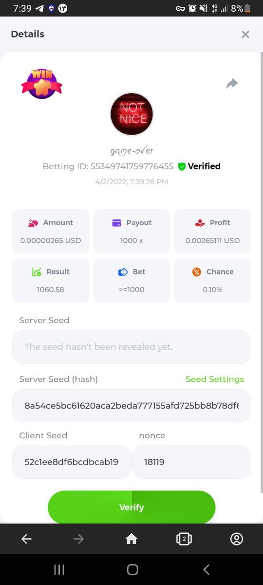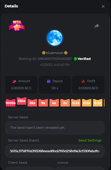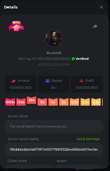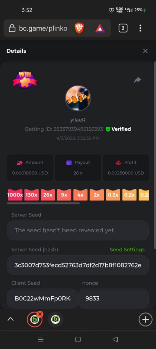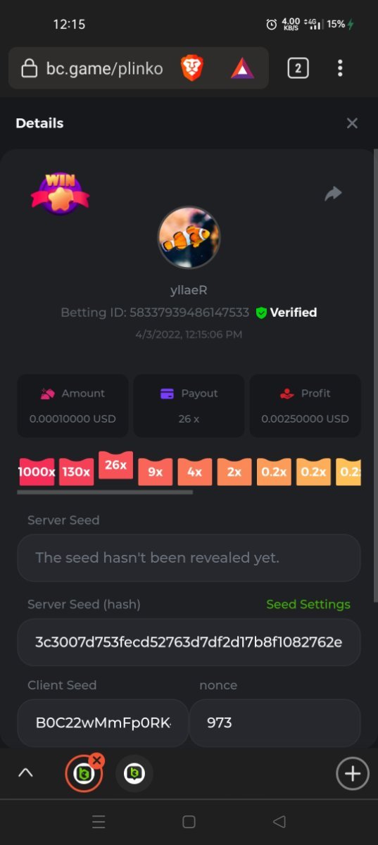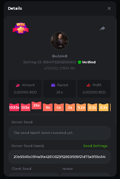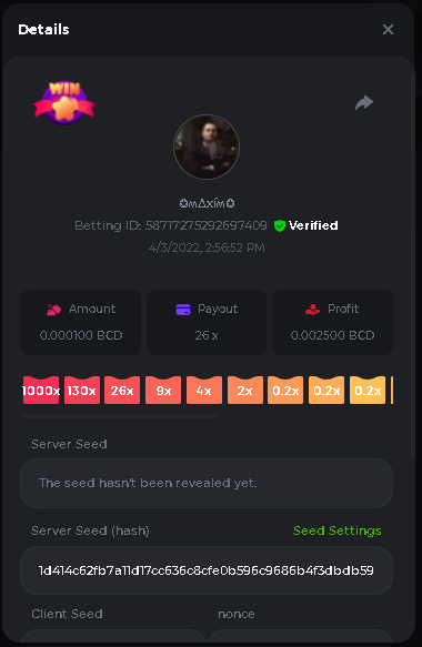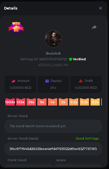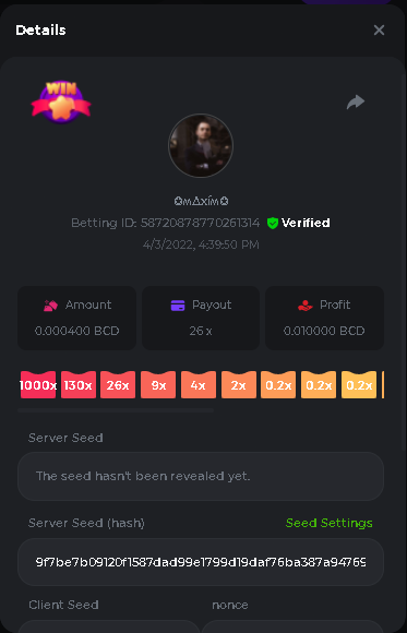 Event Team BCGame_Maxim Posted April 2, 2022 Event Team Share Posted April 2, 2022 BC Profile : https://bc.game/user/profile/2008867 [My Name not updating on forum ] Limbo 2000x = 2 Point Plinko 26x = 121 x 1 = 121 Points Plinko 130x = 18 x 7 = 126 Points Plinko 1000x = 3 x 10 = 30 Points Total = 279 Points https://bc.game/sd/?sd=10HMV099U89R83 https://bc.game/sd/?sd=10HMVUJVQL60PF https://bc.game/sd/?sd=10HMWDJIN8DN9V https://bc.game/sd/?sd=10HMWLM0ENQOLV https://bc.game/sd/?sd=10HMWT2C63O3DF https://bc.game/sd/?sd=10HMX16KP3YYOJ https://bc.game/sd/?sd=10HMX9ZY2GITQR https://bc.game/sd/?sd=10HMXJ4QRR6OSZ https://bc.game/sd/?sd=10HMXVP1UA7XG3 https://bc.game/sd/?sd=10HMY5S8JBCPAR 130x Plinko https://bc.game/sd/?sd=10HMYCLEZN2P03 https://bc.game/sd/?sd=10HMZ48EXJR28J https://bc.game/sd/?sd=10HMZDJEIRCM4Z https://bc.game/sd/?sd=10HMZM7EAJMZ9V https://bc.game/sd/?sd=10HMZT3AQ4ZNKJ Plinko- 130x https://bc.game/sd/?sd=10HMZYAENOWS9F https://bc.game/sd/?sd=10HN02HHARQN83 https://bc.game/sd/?sd=10HN0BJN21AQS3 https://bc.game/sd/?sd=10HN0IBWWC9VDF https://bc.game/sd/?sd=10HN0Z0OHFFAQB https://bc.game/sd/?sd=10HN1C9UFBWJKJ https://bc.game/sd/?sd=10HN1FU9X2SH03 https://bc.game/sd/?sd=10HN1LH3YEB8R7 https://bc.game/sd/?sd=10HN1TPUHD6YOJ https://bc.game/sd/?sd=10HN1Y55WK6TCJ https://bc.game/sd/?sd=10HN292WYUHWYB Plinko-130x https://bc.game/sd/?sd=10HN2ENVY81WK3 https://bc.game/sd/?sd=10HN2SV3QUPIC3 https://bc.game/sd/?sd=10HN2WTCI8K2KZ https://bc.game/sd/?sd=10HN30904JDES3 https://bc.game/sd/?sd=10HN3AZYMI0E8J https://bc.game/sd/?sd=10HN4K9RMD4BV7 https://bc.game/sd/?sd=10HN57R2MUSMC3 https://bc.game/sd/?sd=10HN5WIE1XR503 https://bc.game/sd/?sd=10HN6KCSR8N95F https://bc.game/sd/?sd=10HN6S682AXLOZ Plinko-130x https://bc.game/sd/?sd=10HN7HZ3QIRP5F https://bc.game/sd/?sd=10HN7L7LU1BV2R https://bc.game/sd/?sd=10HN89KTDX3HUB https://bc.game/sd/?sd=10HN994FWQV3TF Plinko-130x https://bc.game/sd/?sd=10HNA40IUSMDQR https://bc.game/sd/?sd=10HNAA4JGDF5LF https://bc.game/sd/?sd=10HNAD0BG2U9SJ https://bc.game/sd/?sd=10HNAG3EZC55HV https://bc.game/sd/?sd=10HNAKHSXAN9QR https://bc.game/sd/?sd=10HNARO51J23O3 Plinko-130x https://bc.game/sd/?sd=10HO2VCGZ75KIB https://bc.game/sd/?sd=10HO31ND4L9V6B https://bc.game/sd/?sd=10HO343E8S7O5V Plinko-130x https://bc.game/sd/?sd=10HO3O2SNVO2KZ https://bc.game/sd/?sd=10HO3SWFIILK43 https://bc.game/sd/?sd=10HO43ZMHL81LF https://bc.game/sd/?sd=10HO46YX9L0G0J https://bc.game/sd/?sd=10HO4ARQ0PUQDV https://bc.game/sd/?sd=10HO4F5PPD9NV7 https://bc.game/sd/?sd=10HO4HR1HCBTOZ https://bc.game/sd/?sd=10HO4K89322T5F Plinko-130x https://bc.game/sd/?sd=10HO4OKBHZV4ER https://bc.game/sd/?sd=10HO59IGVB7Y1F https://bc.game/sd/?sd=10HO5DJJWBPGCZ https://bc.game/sd/?sd=10HO5GWWINUNMB https://bc.game/sd/?sd=10HO5U3ZSMKETV https://bc.game/sd/?sd=10HO6110G8KRV7 https://bc.game/sd/?sd=10HO678DKO0POZ https://bc.game/sd/?sd=10HO6FWW88UQKZ https://bc.game/sd/?sd=10HO6LXNMMPZIR https://bc.game/sd/?sd=10HO6NKJ5D3TOZ https://bc.game/sd/?sd=10HO6VT6XHL7O3 https://bc.game/sd/?sd=10HO71JDL4M2OJ Plinko-130x https://bc.game/sd/?sd=10HO75TGBNBH8Z https://bc.game/sd/?sd=10HO79NAP5VJMB https://bc.game/sd/?sd=10HO7R9R882W43 https://bc.game/sd/?sd=10HO7UII8JLC0J Plinko-1000x https://bc.game/sd/?sd=10HO84GYI4KYDV Plinko-1000x https://bc.game/sd/?sd=10HO8AU8AUG74J https://bc.game/sd/?sd=10HO8O8SKBHNV7 Plinko-130x https://bc.game/sd/?sd=10HO94ZEKSY49F https://bc.game/sd/?sd=10HO9Z2X4F455F https://bc.game/sd/?sd=10HOA28RUAP3WZ https://bc.game/sd/?sd=10HOA4Z4450G0J https://bc.game/sd/?sd=10HOA8ARZPO8PF https://bc.game/sd/?sd=10HOAAJSJQML1V https://bc.game/sd/?sd=10HOAE95XPHFKJ https://bc.game/sd/?sd=10HOAKACLTL3PV Plinko-130x https://bc.game/sd/?sd=10HOAQJDNJBKER Plinko-130x https://bc.game/sd/?sd=10HOAYXR7YQYHF https://bc.game/sd/?sd=10HOB7V4IYWQVN https://bc.game/sd/?sd=10HOBL2RW2WB2R https://bc.game/sd/?sd=10HOBUT5Z45LAR https://bc.game/sd/?sd=10HOBW3HLRDGCZ https://bc.game/sd/?sd=10HOF4QGQJM4GJ https://bc.game/sd/?sd=10HOGCG97AT0K3 Plinko-130x https://bc.game/sd/?sd=10HOGG6JHP01SJ https://bc.game/sd/?sd=10HOH1JN7WJTW3 https://bc.game/sd/?sd=10HOH7ILXBFCB7 https://bc.game/sd/?sd=10HOHHEBQASCUR https://bc.game/sd/?sd=10HOIB0E80URKJ https://bc.game/sd/?sd=10HOIFGBZV7B4J Plinko-130x https://bc.game/sd/?sd=10HOIMGJTU8PW3 https://bc.game/sd/?sd=10HONW6VSJC3DF https://bc.game/sd/?sd=10HOO5VQ3F9FKJ https://bc.game/sd/?sd=10HOOLCJI97THV https://bc.game/sd/?sd=10HOOOK1A7SHLF Plinko-130x https://bc.game/sd/?sd=10HOOU172Q9EDV https://bc.game/sd/?sd=10HOOX6EV55YC3 https://bc.game/sd/?sd=10HOP3ZXXTSX03 https://bc.game/sd/?sd=10HOPACAN64KCZ https://bc.game/sd/?sd=10HOPDGU3UFS43 https://bc.game/sd/?sd=10HOPJO4AHNZ0Z https://bc.game/sd/?sd=10HOPSWNJA239V https://bc.game/sd/?sd=10HOPWEDOAAJ9V https://bc.game/sd/?sd=10HOQ3UQDHY783 Plinko-130x https://bc.game/sd/?sd=10HOQNTV97YXW3 https://bc.game/sd/?sd=10HORN4SWQ0LCJ https://bc.game/sd/?sd=10HORTQ3E7XY4Z https://bc.game/sd/?sd=10HOSK9W0XANF7 https://bc.game/sd/?sd=10HOSNUQVV1F6B Plinko-1000x https://bc.game/sd/?sd=10HOSX2PK5F28J Plinko-130x https://bc.game/sd/?sd=10HOULHX9FGU1F https://bc.game/sd/?sd=10HOUW66W1ANF7 https://bc.game/sd/?sd=10HOV6VNFRBXN7 https://bc.game/sd/?sd=10HOVGGNJCZQ4Z https://bc.game/sd/?sd=10HOW4N7L21G5V https://bc.game/sd/?sd=10HOWOMVVND637 https://bc.game/sd/?sd=10HOWTV42YBJ0Z https://bc.game/sd/?sd=10HOWZKCAO9ES3 https://bc.game/sd/?sd=10HOZ7DLY43M6R https://bc.game/sd/?sd=10HOZCNJ1DYPEB https://bc.game/sd/?sd=10HOZIN5QEOS9F https://bc.game/sd/?sd=10HOZRDT7YLJWZ https://bc.game/sd/?sd=10HOZWXR98PZ4J https://bc.game/sd/?sd=10HP091AQUA7MB https://bc.game/sd/?sd=10HP0BQVNOTYXF https://bc.game/sd/?sd=10HP16NTRPQL8Z https://bc.game/sd/?sd=10HP19CNZU4PAR Plinko-130x https://bc.game/sd/?sd=10HP1J6P5IAXOZ https://bc.game/sd/?sd=10HP2J75KHKR2R https://bc.game/sd/?sd=10HP2LZZQ9ECCZ https://bc.game/sd/?sd=10HP2QCAO5I6FN https://bc.game/sd/?sd=10HP4QM5RLN11V https://bc.game/sd/?sd=10HP534ZZRRH8Z https://bc.game/sd/?sd=10HP57HKDJZ6DV https://bc.game/sd/?sd=10HP5NR3OIC103 h