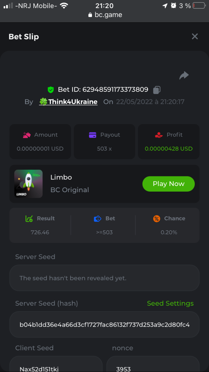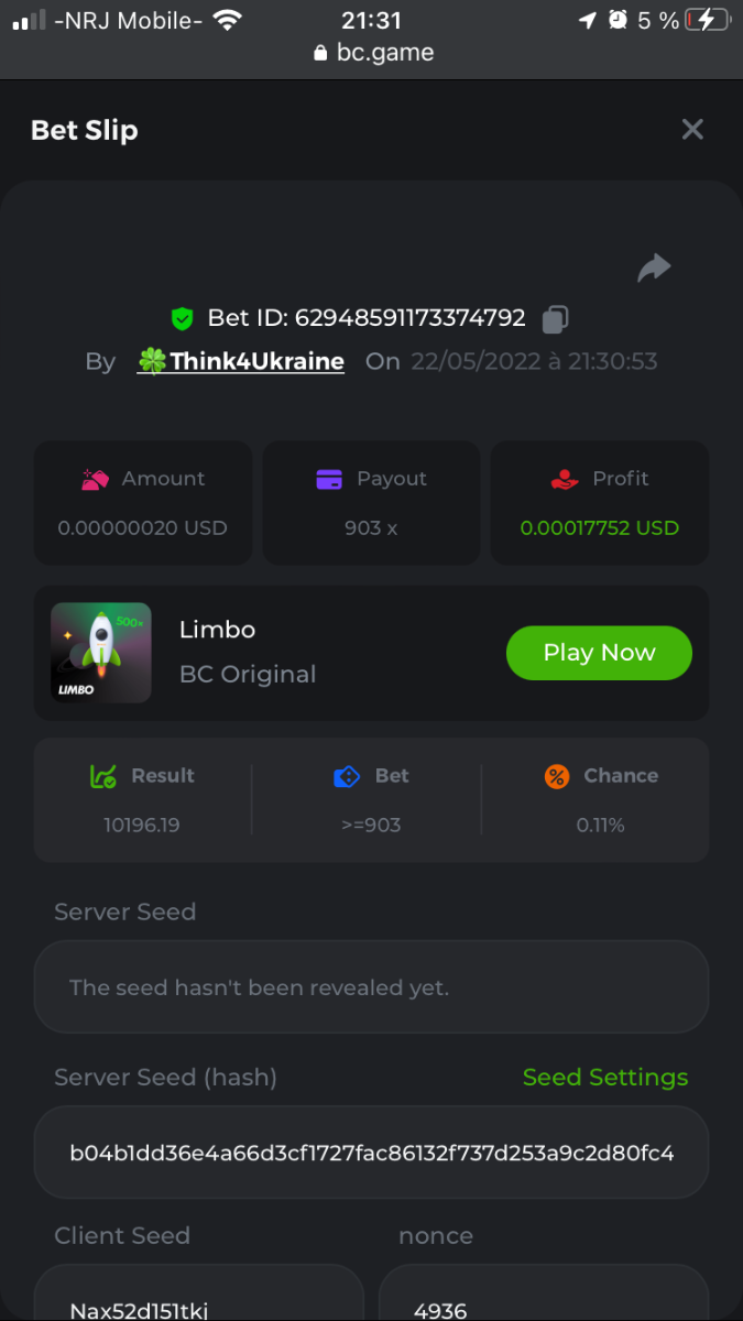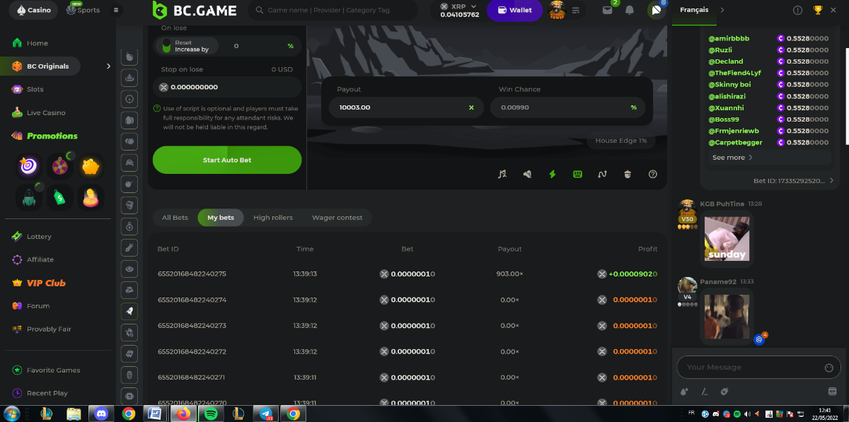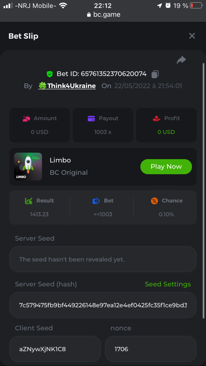 Member AkSyEn03 Posted May 22, 2022 Member Share Posted May 22, 2022 🏵ÉVÉNEMENTS DU WEEK-END🏵Uniquement pour la room FrançaiseDÉFI :Heure de début : 22Mai 2022 à 13h. Heure de fin : 13h le 23 Mai/2022 24h de defi n'est ce pas merveilleux ^^ Quel est le défi ? Jeu : LIMBO Avoir un maximum de points possible sur les 17points x26,x53, x103, x203, x 303 x 503, x 703, x903, x1003, x2003 x3003, x5003, x7003, x9003, x10003, x15003 x20003 Bonus pour x50003 Il faut valider minimum 5 bet x53, x103, x203, x 303 x 503 pour la qualification. SI égalité sur un multiplicateur , le filtre sélectionnera en 2éme la somme et sera prise en compte .VIP minimal > Il n'y a pas de niveau VIP minimum.Pari minimum : 0$ JB est pris en compte Récompenses 19$12$7$4eme place à 10 -ème place 2$Conditions bonus :Accédez au jeu pour choisir votre ID de pari, cliquez sur l'icône Partager (↷) puis sur Copier le lien Dans le même message, téléchargez une capture d'écran de votre gain en cliquant sur l'ID du jeu 1. N'utilisez pas plusieurs comptes 2. Les paris soumis avant ou après la date et l'heure limite ne seront pas acceptés 4. tout manquement au conditions de bonus, vera son paris annulé. alors lisez bien avant de commencer et BC Game vous souhaite des moments heureux et profitablesBonne chance, que le meilleurs gagne !! Link to comment Share on other sites More sharing options...