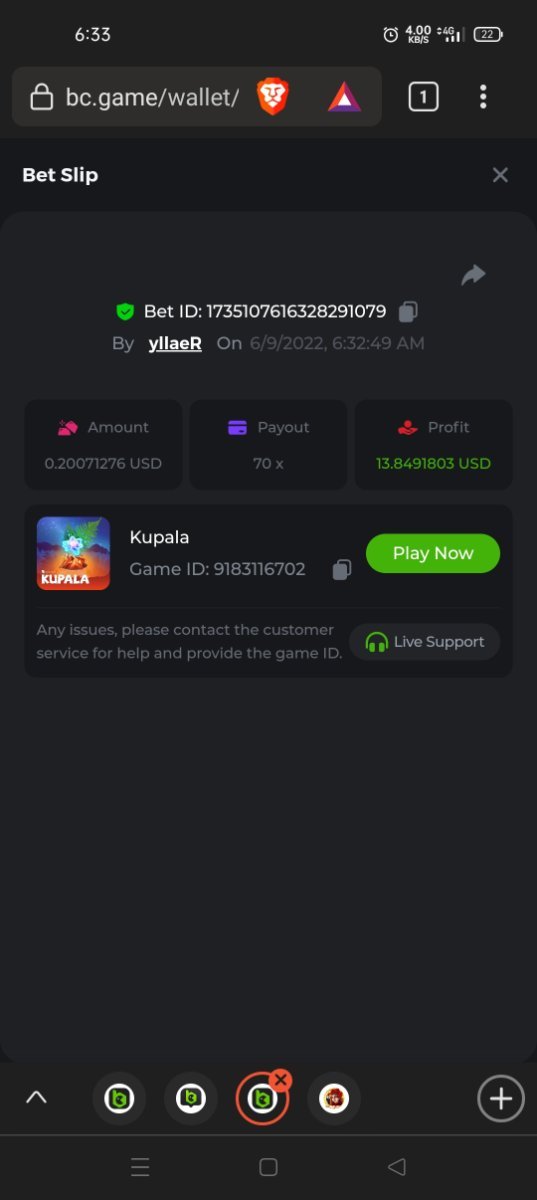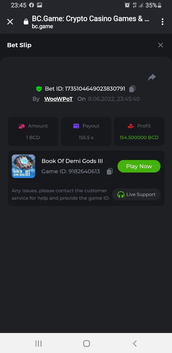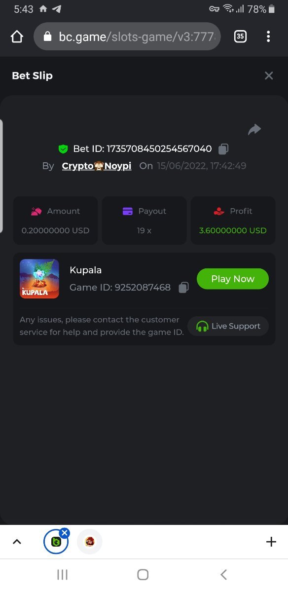 Stefan99 Posted June 8, 2022 Share Posted June 8, 2022 Finally got 1 on my 2nd attempt today https://bc.game/sd/?sd=10MCN5LSB7QZV7 Goodluck players, I'm so unlucky today again lose my remaining 5$ no 10x payout for me. Link to comment Share on other sites More sharing options...