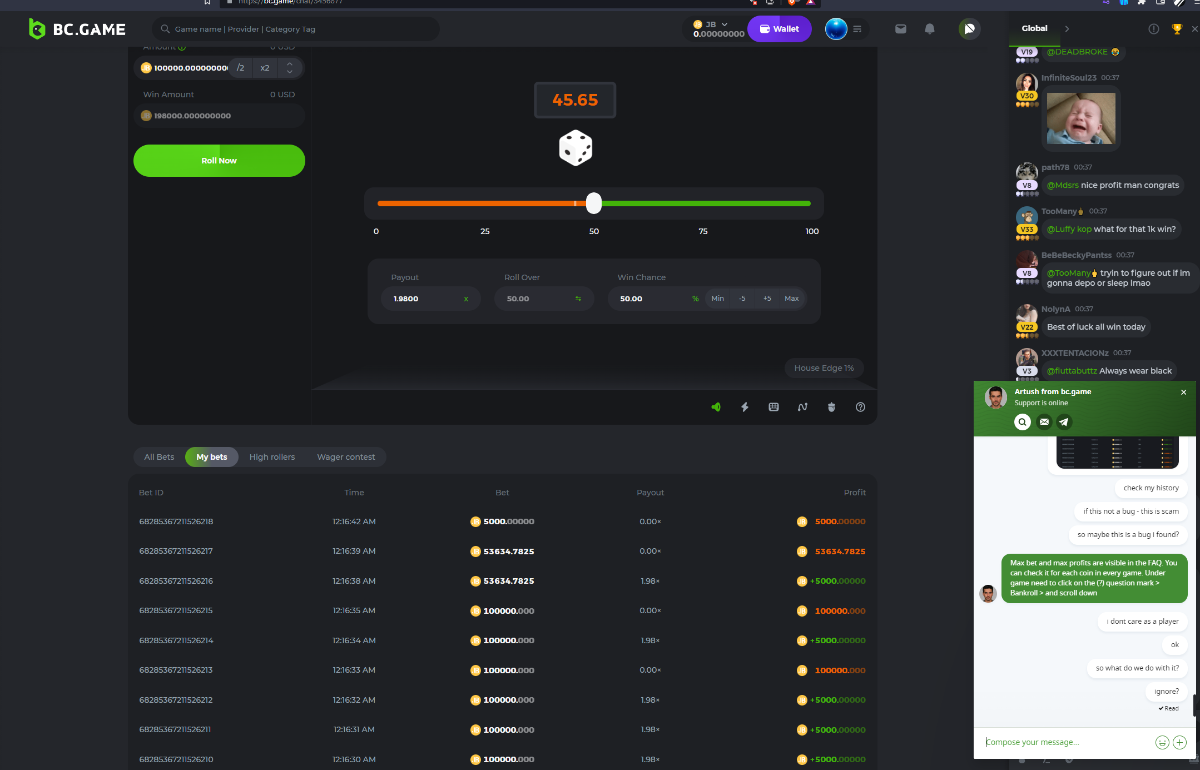 Guys, check the screenshot, if you play maxbet, the interface accepts a bet of 100,000. Promises a reward of 198,000, but gives only 5,000. In support tells this is not a bug - but like the rule is))